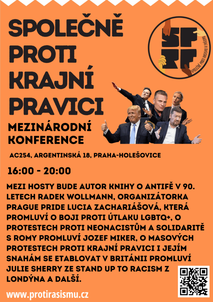 V pátek 7. 11. od 16 hodin si můžete ve dvou panelech poslechnout české i zahraniční řečnictvo, jejich hodnocení vývoje krajní pravice nejen ve vztahu k letošním volbám, a sdílení zkušeností ze zahraničí.